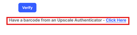 9. On the authenticator setup page click "Have a barcode from an Upscale Authenticator"